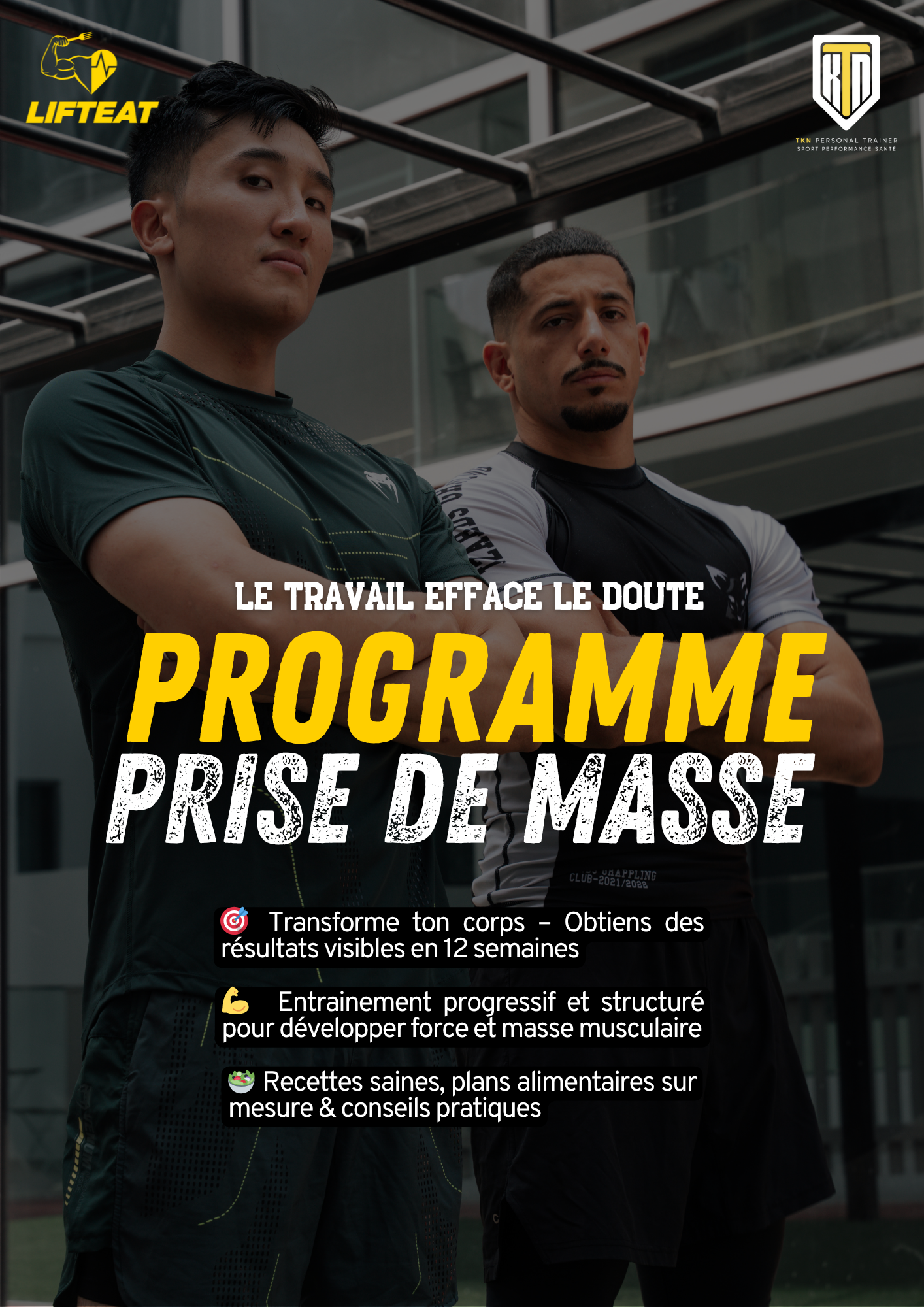 Tu veux prendre du muscle rapidement et efficacement ? Ce programme complet de 3 mois est conçu pour t’aider à gagner jusqu’à 6 kg de masse musculaire de manière structurée et durable.